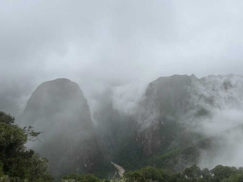 列車で最寄りのマチュピチュ駅に向かう間、外は大雨。到着してしばらくの間は、雨が降り霧がかかった状態でした。